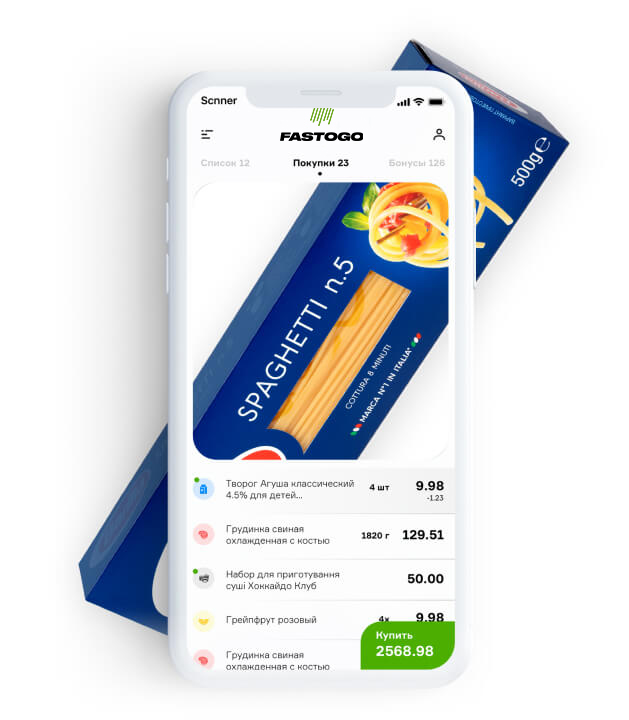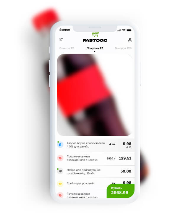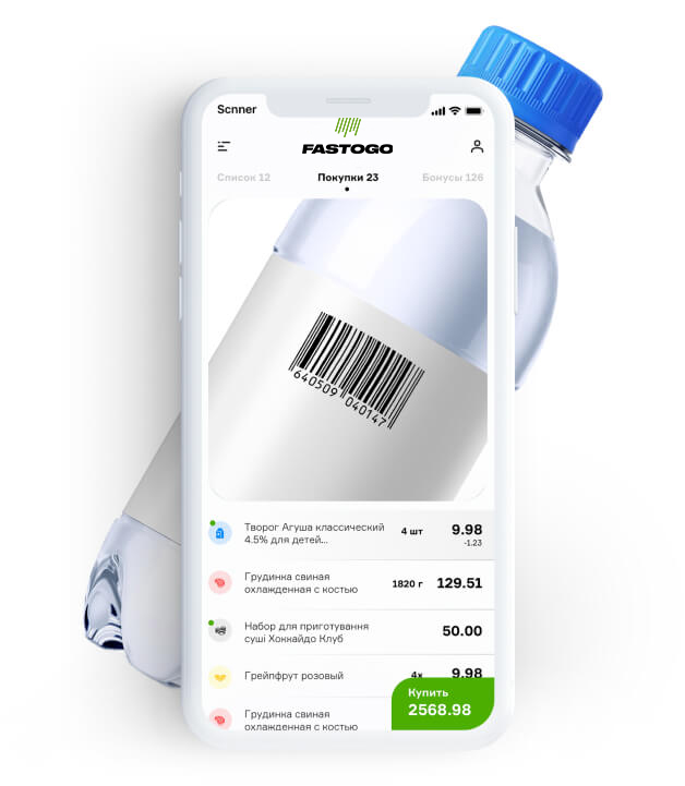 корзинуСобирает корзину сканируя камерой штрихкоды продуктов -